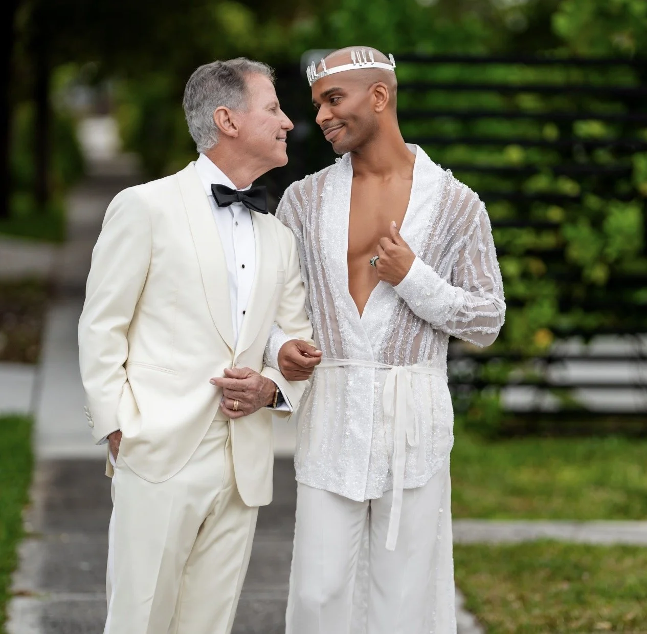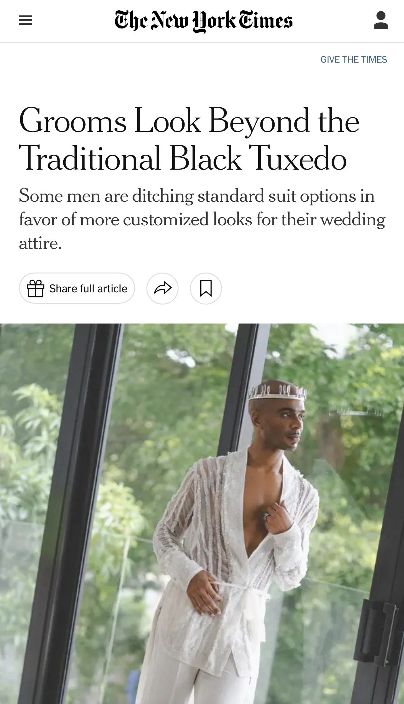 Hand beaded and Styled Custom Wedding look for Interior Designer , Travis London. Featured in The New York Times